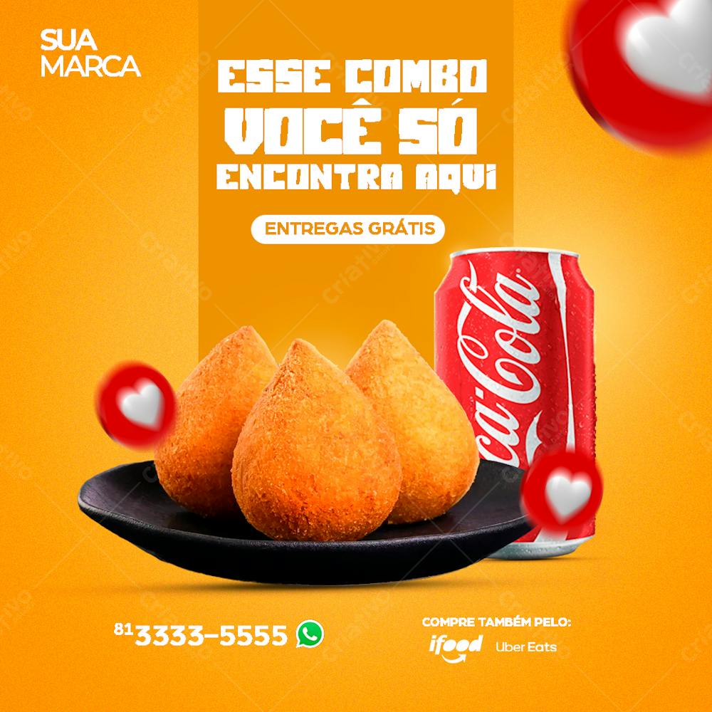Combo 3 coxinhas + refri (lata) 4 R$25,00 O preço original era: R$25,00.R$20,00O preço atual é: R$20,00.